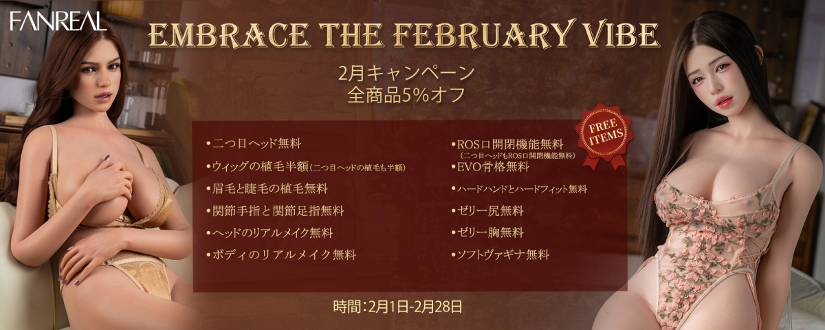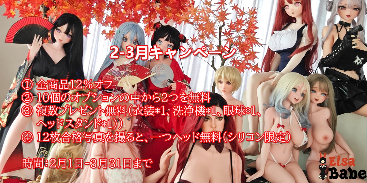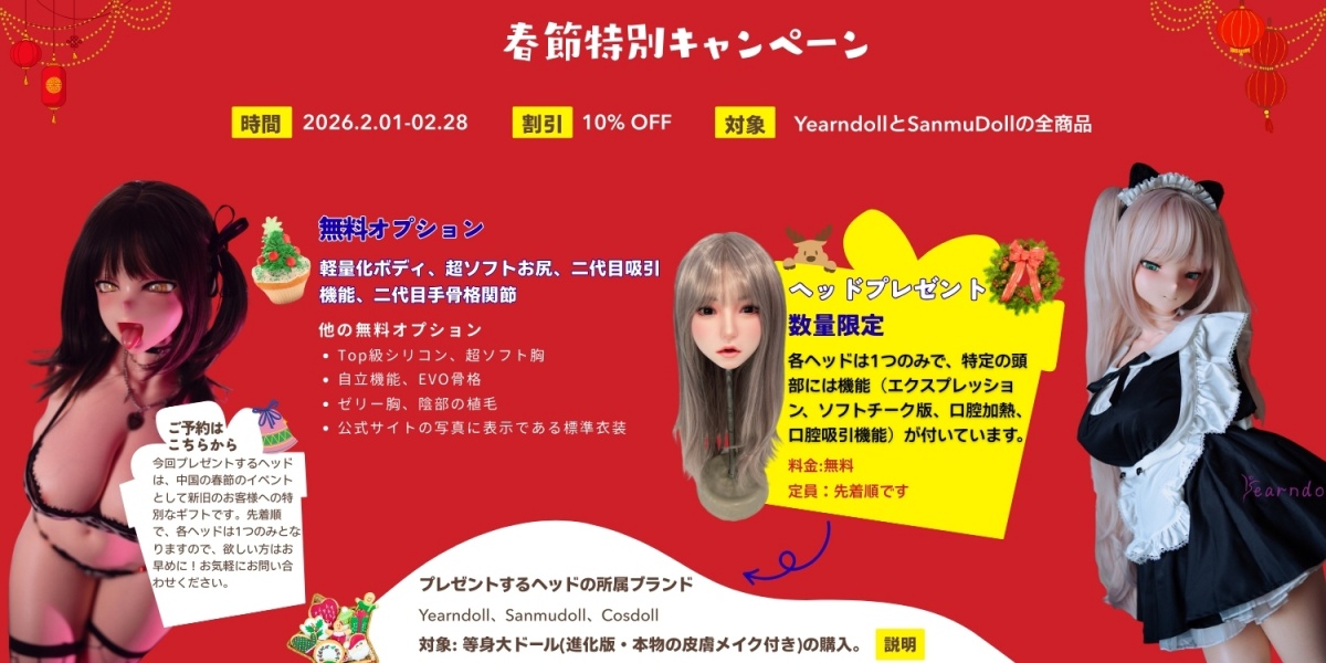 対象:女性フルシリコンセット品(ヘッド単体、ボディ単体、男性ドール対象外)時間:1月16日-2月28日まで