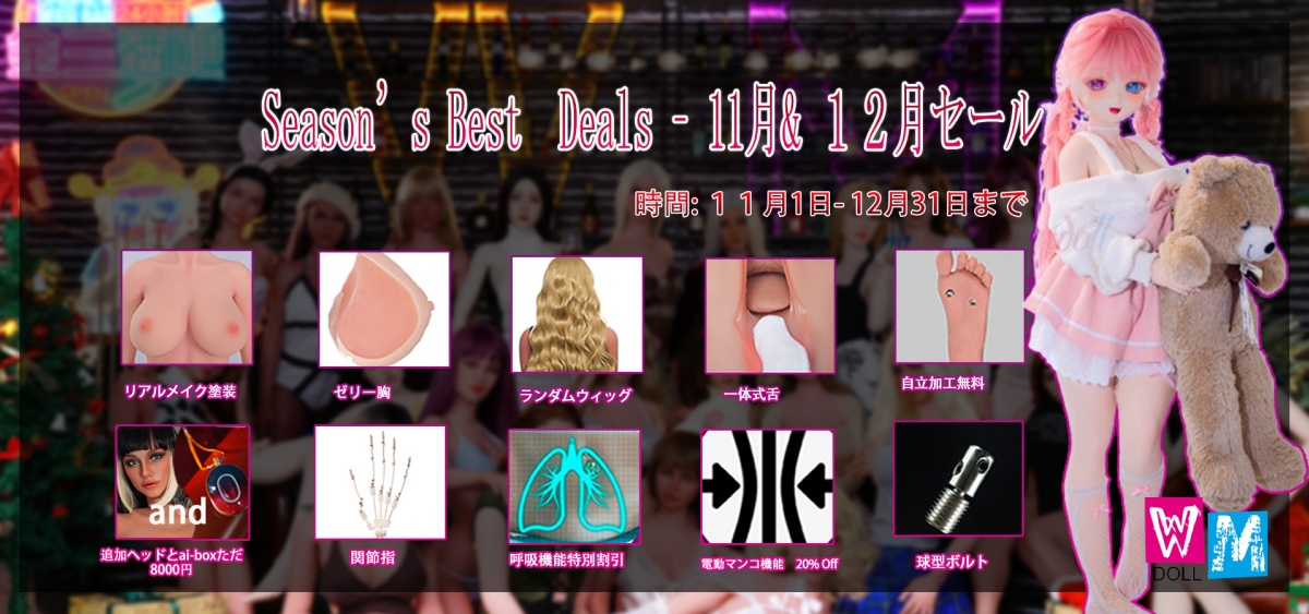 | 製品名 | 【11-12月限定キャンペーン 追加tpeヘッド無料 S-TPE無料/関節指無料/ゼリー胸無料/リアルメイク塗装無料/固定舌無料/自立無料】wmdoll アニメドール ヘッドとボディ自由に組合 ソフトビニール製ヘッド+TPE製ボディ 等身大リアルラブドール |