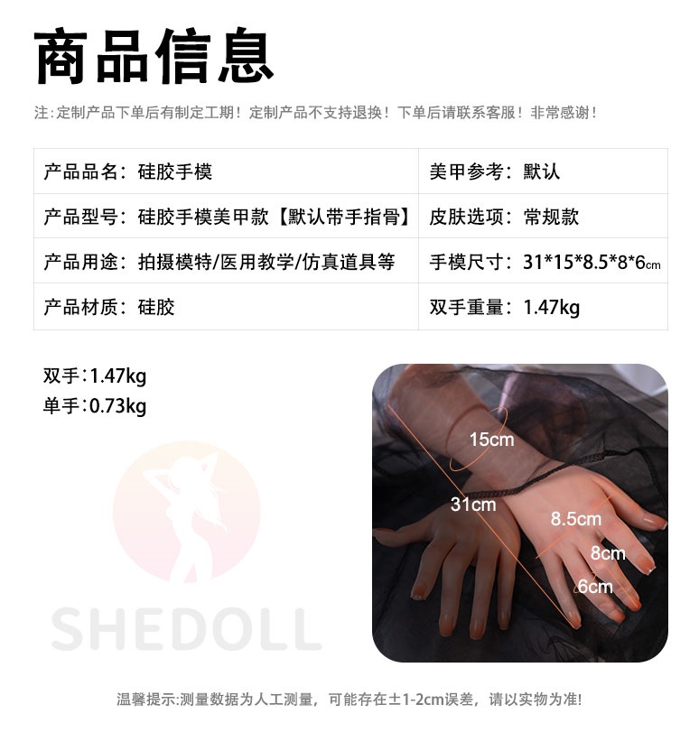 | 製品名 | SHEDOLL 新しいシリコン手 左手と右手セット 等身大ドールの手 可動式 最新関節指付き 重量0.88kg(両手) |