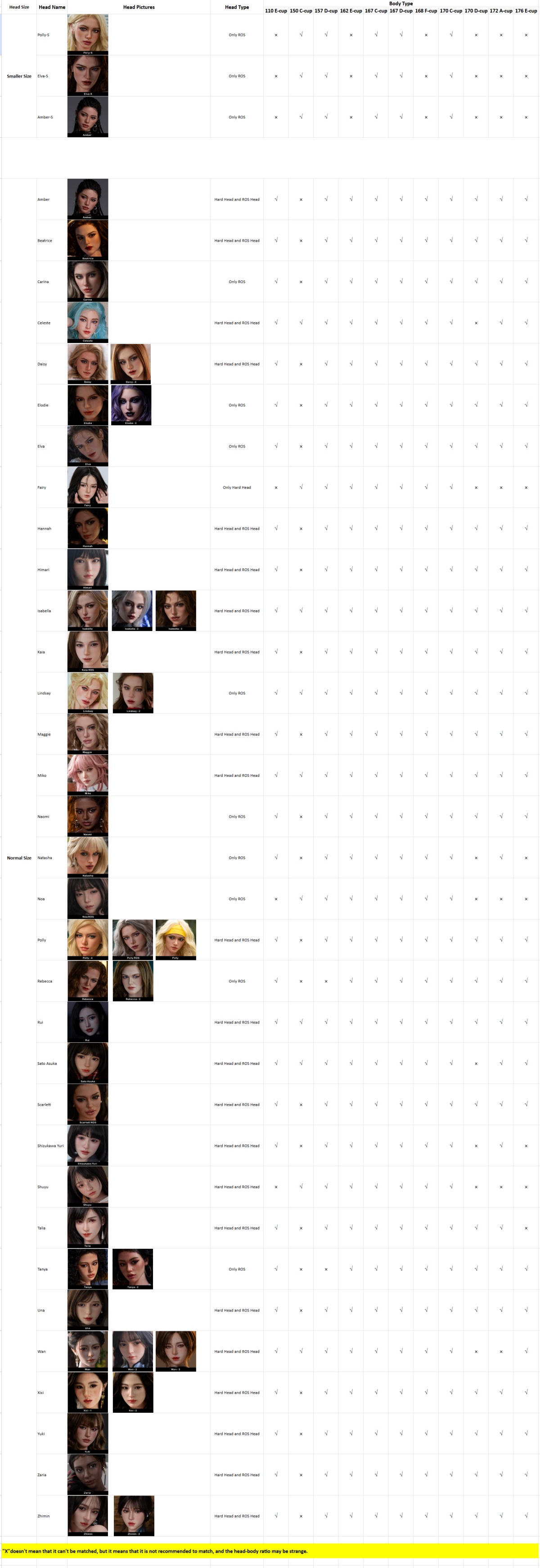 ヘッドとボディの組合一覧